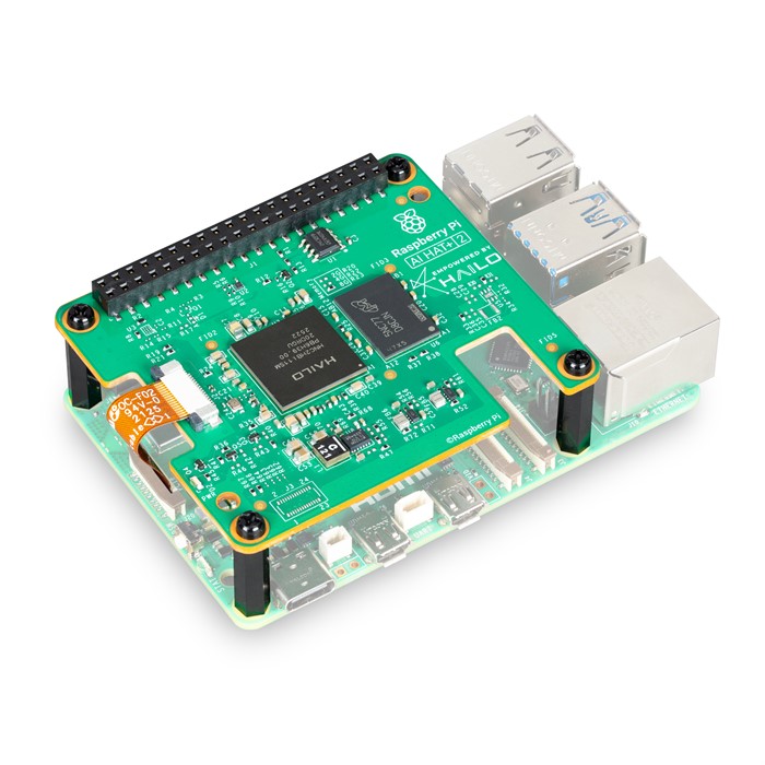 The Raspberry Pi AI HAT+ 2 is an add-on board based on the Hailo-10H AI accelerator that brings generative AI capability to Raspberry Pi 5. With 8GB of dedicated on-board RAM, the AI HAT+ 2 is ideal for running large language models (LLMs) and vision-language models (VLMs) locally, leaving the host Raspberry Pi 5 free to handle other tasks. The AI HAT+ 2 delivers reliable, low-latency, accelerated generative AI at the edge, making it the perfect choice for applications including offline process control, secure data analysis, facilities management, and robotics.The AI HAT+ 2 delivers 40 tera-operations per second (TOPS) of INT4 inferencing performance, with computer vision performance equivalent to the 26 TOPS AI HAT+. A set of sample models is provided by Hailo; users can also train custom models to suit their application, such as speech to text, translation, or visual scene analysis.Like the original Raspberry Pi AI HAT+, the AI HAT+ 2 communicates using Raspberry Pi 5’s PCI Express interface. When the host Raspberry Pi 5 is running an up-to-date Raspberry Pi OS image, it automatically detects the on‑board Hailo accelerator and makes it available for AI computing tasks. The built-in rpicam‑apps camera applications in Raspberry Pi OS natively support the AI module, automatically using the accelerator to run compatible post-processing tasks.
